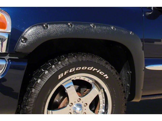 Aggressive Protection. Looking to achieve a bolder look with your Chevrolet Silverado? Lund might have the answer with this Silverado 1500 Fender Flare River Style replacement kit. Its mean design and textured black finish make an ideal combination for trail-ready aesthetics. Additionally, these flares will provide substantial protection to the rear of your vehicle from rocks, debris, and other issues associated with extreme driving conditions.