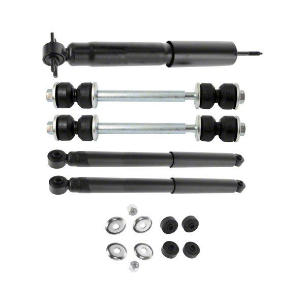 Premium Suspension Kit. The Front and Rear Shocks with Front Sway Bar Links restore suspension performance by replacing worn components that affect handling, ride quality, and vehicle stability. Designed to bring improved road feel and control, these parts are essential for maintaining the safety and comfort of your driving experience.