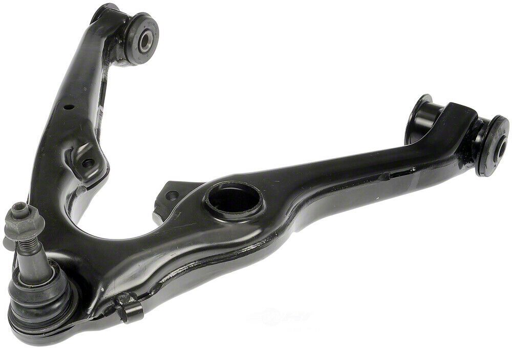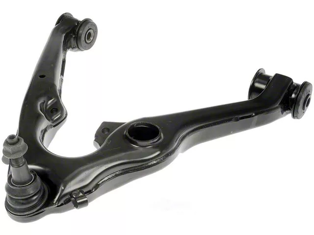 Front Lower Suspension Control Arm and Ball Joint Assembly. Restore the strength of your vehicle's front-end steering system and suspension by replacing a worn ball joint and control arm using this lower control arm and ball joint assembly. The ball joint is pre-installed for convenience, and the entire assembly can be used as a rapid replacement to strengthen your vehicle efficiently.