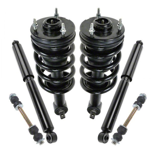 Complete Upgrade. Moreover, these Front Strut and Spring Assemblies with Rear Shocks and Sway Bar Links are designed to enhance your driving experience by improving road handling and stability. Made with an application-specific design, the product is engineered to fit perfectly on all 2007-2013 Chevrolet Silverado 1500s. The package comes with rear shocks and sways bar links, ensuring a complete suspension system upgrade for your vehicle.