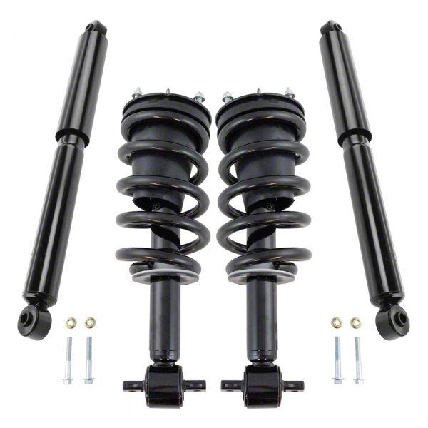 Restored Stability. Improve the stability of your ride with this Front Strut and Spring Assemblies with Rear Shocks on your Silverado. Made to replace your stock struts and shocks, it features specially engineered and manufactured components that are made tough and are just as effective as your original hardware.