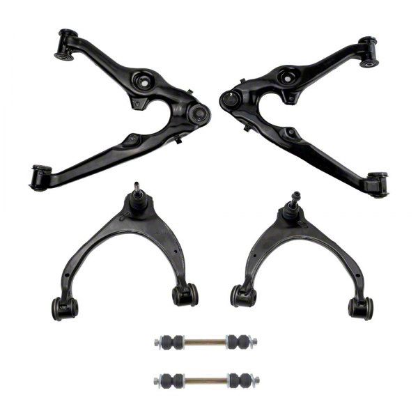 Complete Front Suspension Kit. The Front Upper and Lower Control Arms with Ball Joints and Sway Bar Links provide a comprehensive suspension replacement solution. These components restore steering precision and improve vehicle handling by replacing worn or damaged parts.