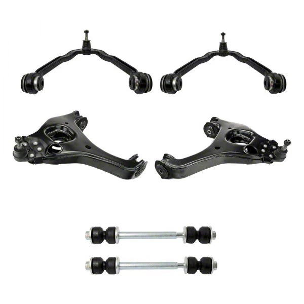 High-Quality Metal Fabrication. All of the Front Upper and Lower Control Arms with Ball Joints and Sway Bar Links are made of premium aluminum anodized metal with a black powder coat gloss, which can endure high temperature, scrapes, collisions, and practically all weather extremes. Engineered to be durable and deliver unrivaled automotive performance, this suspension system is the pinnacle of practical design.