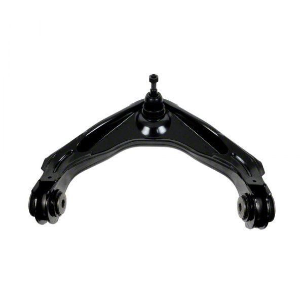 Construction and Appearance. This control arm is constructed from durable steel and comes with pre-installed bushings for a seamless replacement. It features a pressed-in ball joint design and is finished to resist corrosion, ensuring longevity and consistent performance.