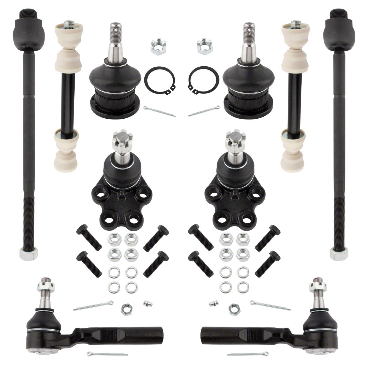 • Package Included: 2x Front Upper Ball Joints (K6540), 2x Front Lower Ball Joints (K6539), 2x Front Sway Bar End Links (K80631), 2x Driver & Passenger Side Inner Tie Rod Ends (EV370), 2x Driver & Passenger Side Outer Tie Rod Ends (ES3492)
