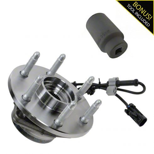 Construction and Appearance. This kit includes a durable bearing and hub assembly manufactured to meet or exceed OEM standards, paired with a sturdy socket designed for effective torque application. The components are treated for corrosion resistance and built for long-lasting performance.