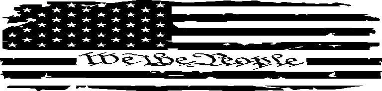 Patriotic Car Decal. Introducing our Full Rear Glass Tattered We The People Flag Decal in Gloss Black, the perfect way to showcase your patriotism and add a touch of style to your vehicle. Designed for your rear window, this decal features a striking Tattered Flag design, proudly displaying the "We The People" quote in bold lettering.