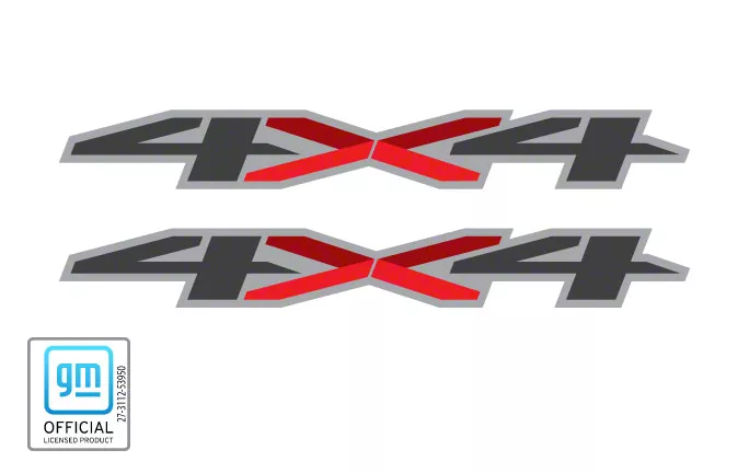 Bed Side Decals. Update the exterior styling of your 2019-2026 Chevrolet Silverado 1500 with a pair of officially licensed GM 4x4 Decals that feature a Gray and Red design. These officially licensed decals are printed on the highest quality vinyl material using the exact same fonts and logos that are used by Chevrolet when creating their very own products.