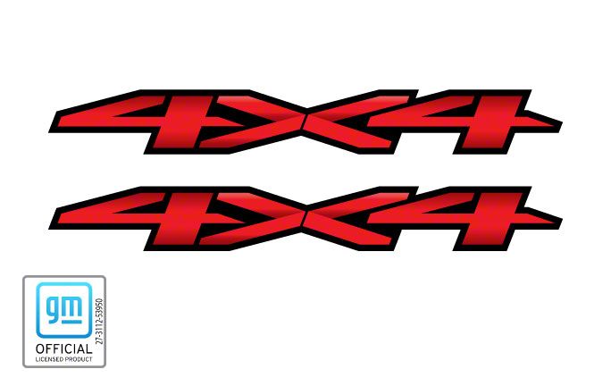 Bed Side Decals. Update the exterior styling of your 2019-2026 Chevrolet Silverado 1500 with a pair of officially licensed GM 4x4 Decals that feature a Red Gradient with Black Background design. These officially licensed decals are printed on the highest quality vinyl material using the exact same fonts and logos that are used by Chevrolet when creating their very own products.