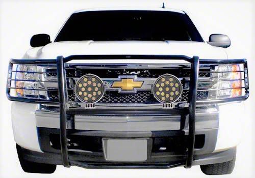 Application. This Grille Guard with 7-Inch Round LED Lights in Black fits the 2007-2013 Chevrolet Silverado 1500 models.