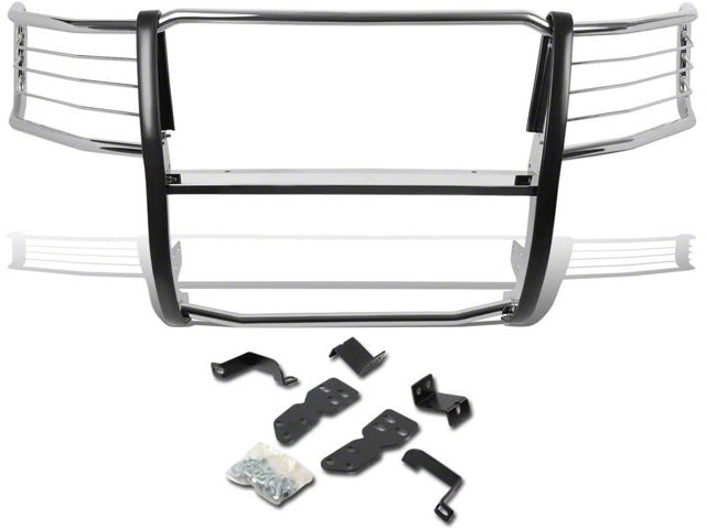 Construction and Appearance. Built from high-quality materials, this grille guard features a polished chrome finish that shines with a mirror-like quality. Not only does it provide a sleek, aggressive look, but it also adds an extra layer of rust resistance and surface durability. Precision-formed bars and welds ensure the guard stands up to everyday impacts and tough weather conditions.