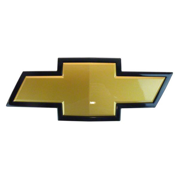 Bowtie Design. This Grille Mounted Chevy Emblem features the iconic bowtie design in a stunning combination of gold and black, crafted from premium and long-lasting materials to ensure durability. The pre-installed 3M automotive-grade adhesive guarantees a strong bond, while the trouble-free peel-off stick-on attachment makes installation a breeze.