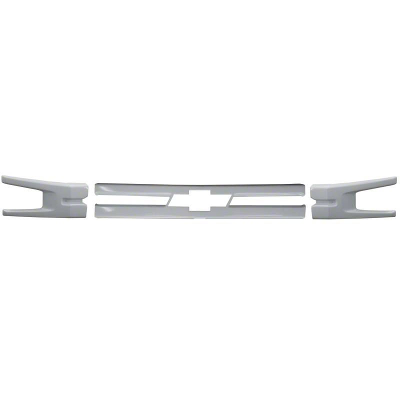 Design. The benefit of the Summit White Grille Overlay is that it gives your Silverado 1500 a unique and attractive look on the outside. The finish makes your vehicle's front end look really stylish and modern. The grille overlay makes your Silverado 1500 look even better compared to others. It makes your vehicle's front look more aggressive and bold, making a strong impression on the road.
