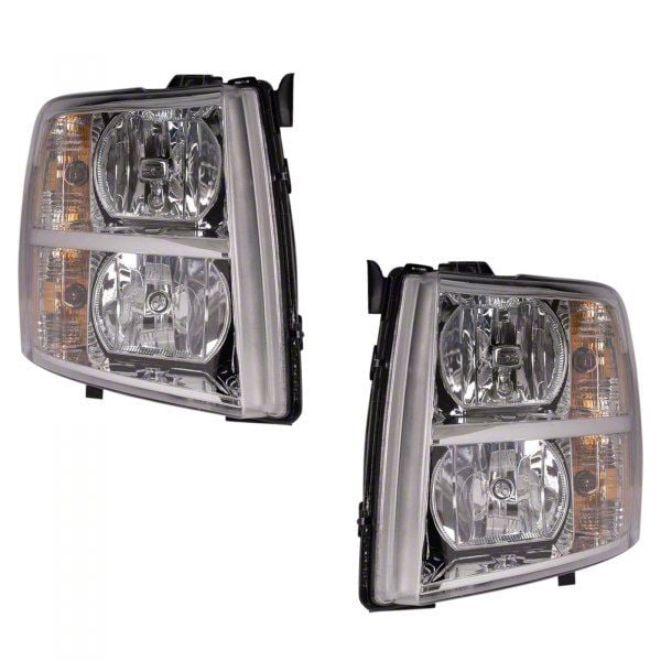 Premium Halogen Headlights. The Halogen Headlights (Chrome Housing, Clear Lens) offer a perfect upgrade for 2007-2013 Chevrolet Silverado 1500 models. These headlights provide superior illumination, enhancing nighttime visibility and overall driving safety. Their stylish chrome housing and clear lens design add a sleek, modern touch to your vehicle's appearance.