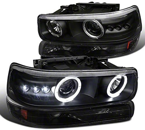 Modern Styling. Are you looking to ditch your Silverado's faded, oxidized, yellowed factory headlights? These Dual Halo Projector Headlights with Bumper Lights are highly stylish, featuring sleek matte black housings, clear lenses, low projector beams, dual-LED halos, and bright LED running lights. These headlights will take your Silverado to the next level, providing a modern appearance that'll knock years off your pickup's age.