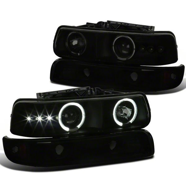 Application. The Dual Halo Projector Headlights with Bumper Lights are expertly made to suit 1999-2002 Silverado 1500s.