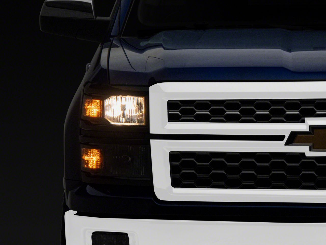 Application. These OE Style One-Piece Headlights with Clear Corner Lights; Black Housing; Clear Lens are designed to fit 2014-2015 Chevrolet Silverado 1500 models equipped with halogen headlights. Driver and passenger side included. Reuses factory bulbs.CA Residents: WARNING: Cancer and Reproductive Harm - www.P65Warnings.ca.gov