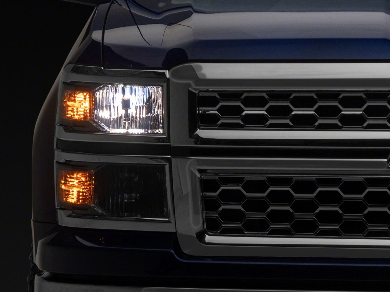 Application. These OE Style One-Piece Headlights with Clear Corner Lights; Chrome Housing; Smoked Lens are designed to fit 2014-2015 Chevrolet Silverado 1500 models equipped with halogen headlights. Driver and passenger side included. Reuses factory bulbs.CA Residents: WARNING: Cancer and Reproductive Harm - www.P65Warnings.ca.gov