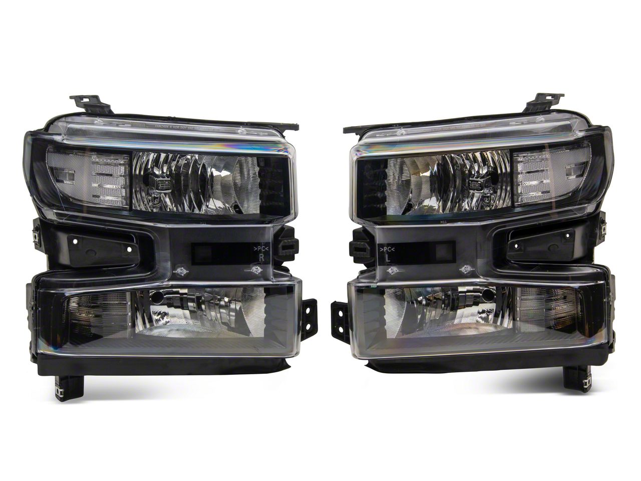 Application. The Headlights with Clear Corners; Black Housing; Clear Lens fits 2019-2021 Silverado 1500 with Factory Halogen Headlights.