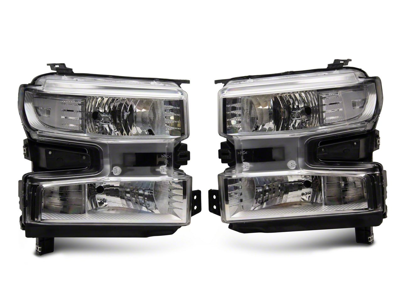 Application. The Headlights with Clear Corners are engineered to accurately fit 2019-2021 Silverado 1500s with factory halogen headlights.