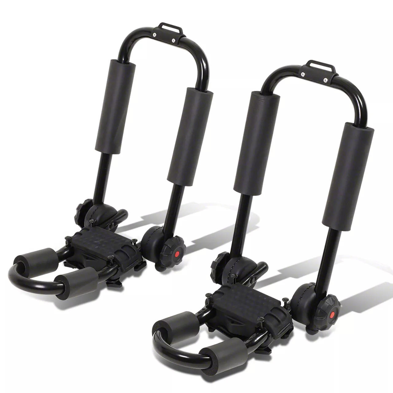 Construction and Appearance. Built with heavy-duty materials, this carrier is designed to withstand the demands of regular use. Foam-padded arms protect kayak surfaces from scratches, while durable nylon straps keep the kayak firmly in place. The black finish adds a sleek, low-profile appearance that blends with most roof rack systems.