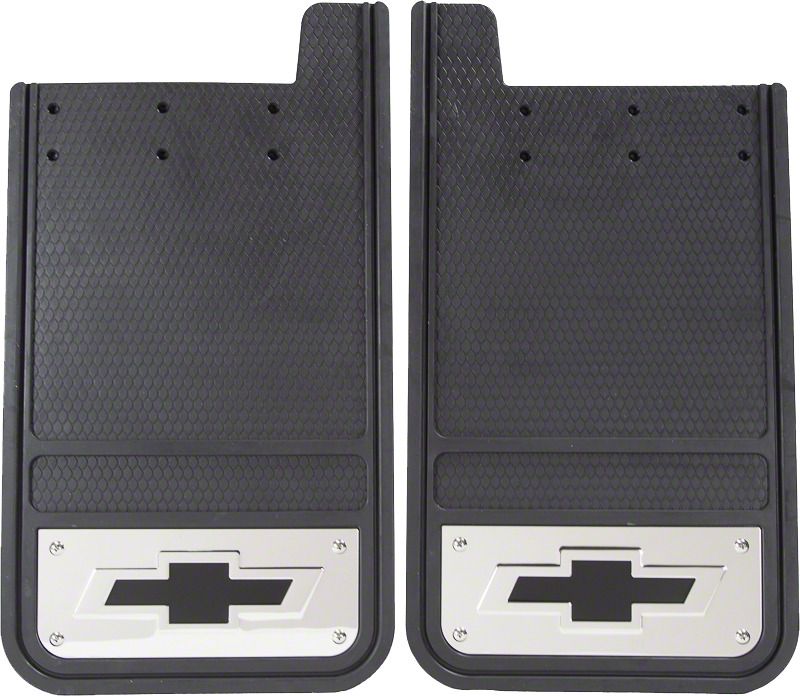Application. The Heavy Duty Mud Guards with Silver Bowtie Logo offer universal fitment.