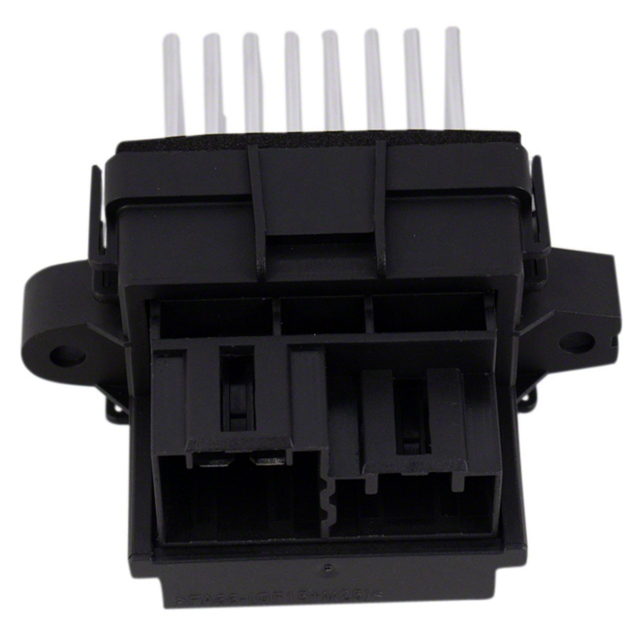 Construction and Appearance. This blower motor module is constructed using durable electrical components housed within a compact, injection-molded plastic casing that provides protection against heat and vibration. The finish is smooth and designed for easy integration into the vehicle's HVAC system, featuring standardized connectors for a secure fit.