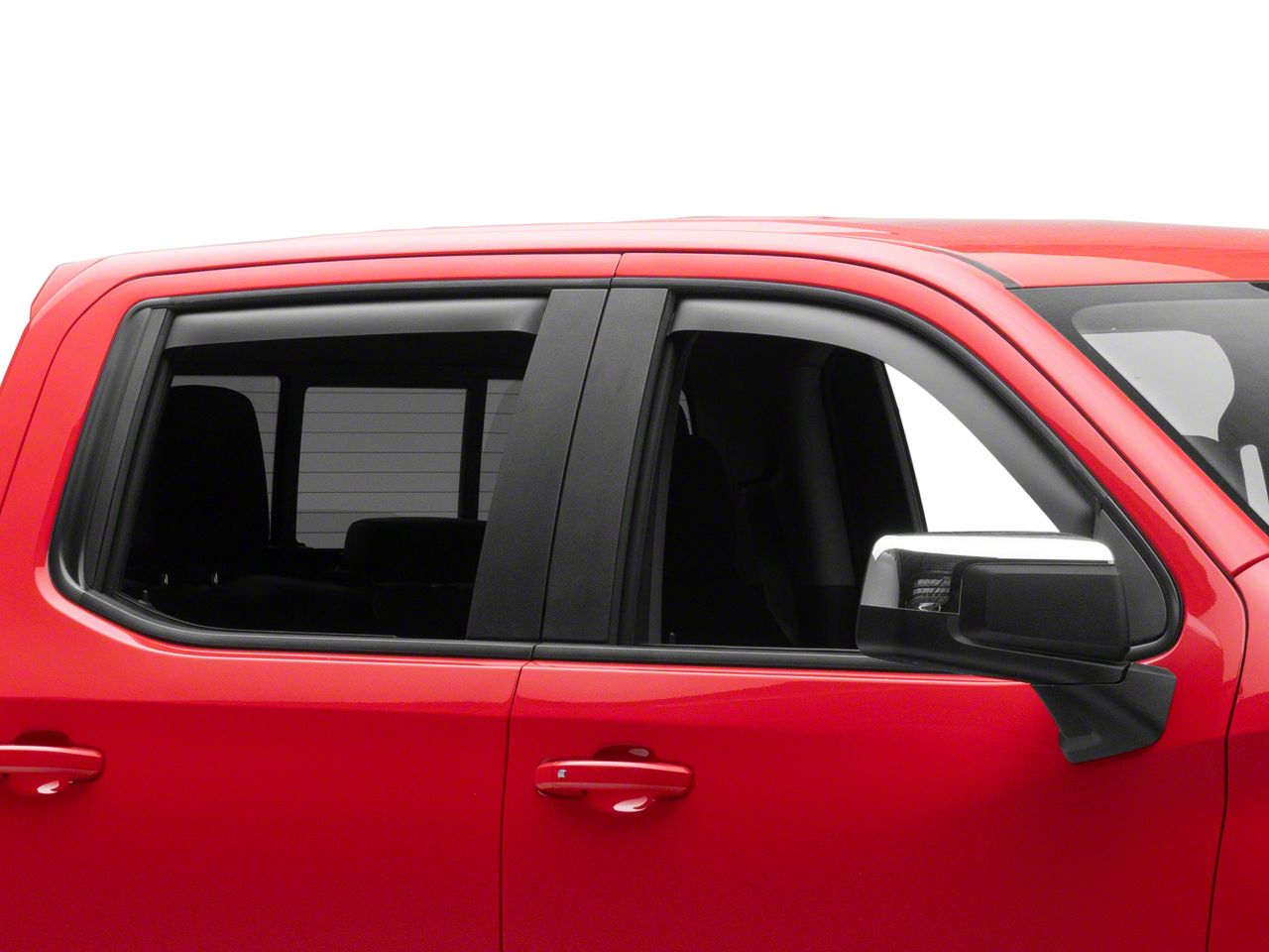 Application. The EGR In-Channel Window Visors; Front and Rear fit 2019-2026 Silverado 1500 Crew Cab models.