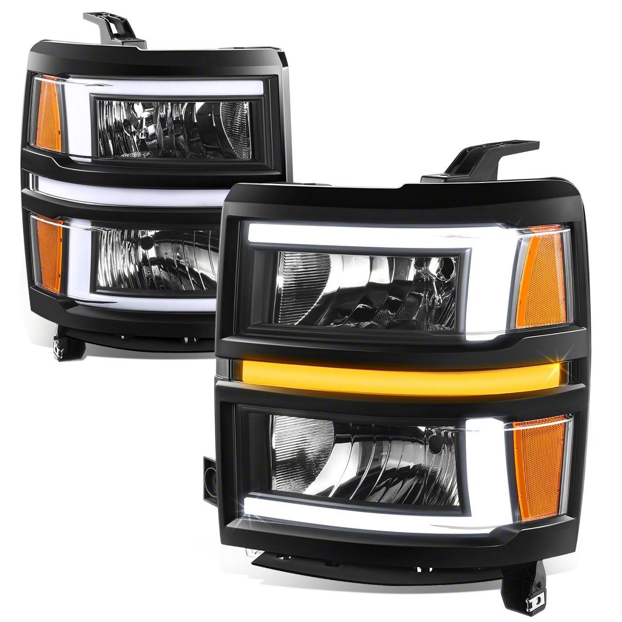 Application. These L-Shaped LED DRL Sequential Headlights with Amber Corners fit all 2014-2015 Chevrolet Silverado 1500 Models.