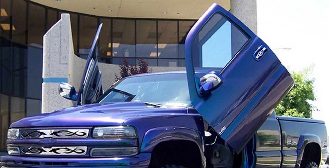 Innovative Upgrade. Transform your Silverado 1500 truck into a sporty-looking vehicle that mimics the Lamborghini with this Lambo Door Kit. It features an innovative design with a patented mechanism that lets you open the front doors of your vehicle outward and then rotate up, just like in a Lamborghini. With this impressive upgrade, your truck becomes a remarkable showpiece that is guaranteed to steal the show.