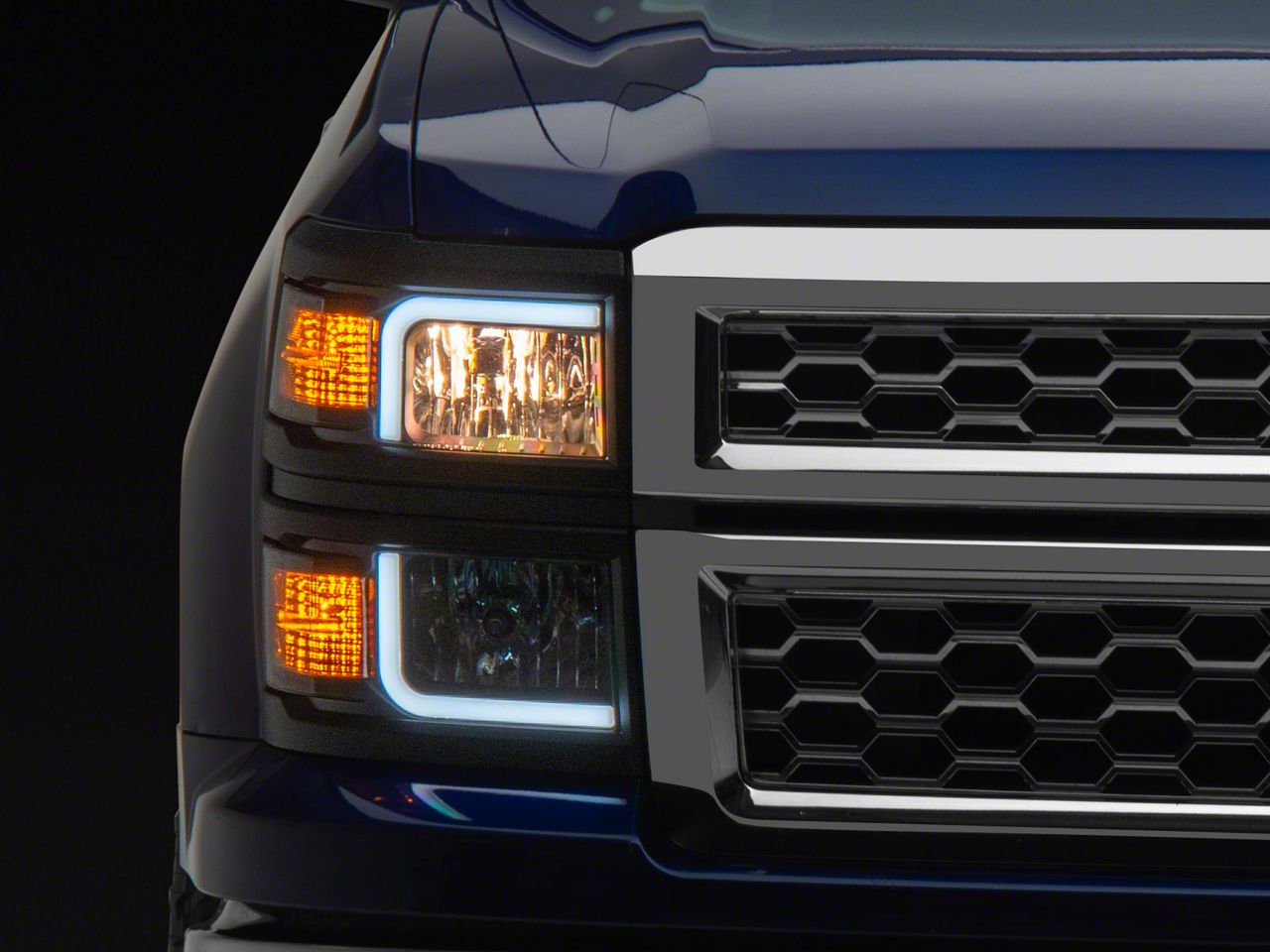 Application. These LED Bar Factory Style Headlights with Bumper Lights; Matte Black Housing; Clear Lens fit all 2014 to 2015 Chevrolet Silverado 1500 models with Factory Halogen Headlights.
