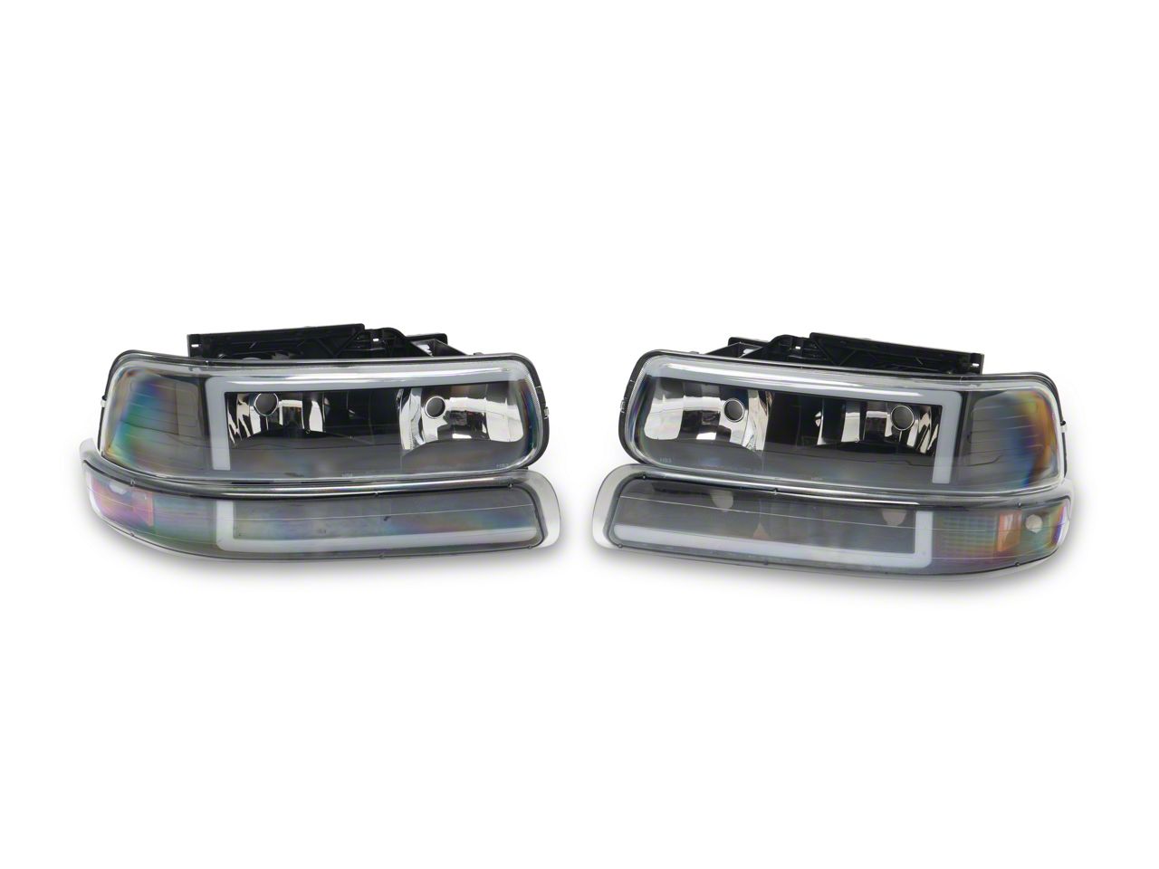 Application. These LED Bar Factory Style Headlights with Bumper Lights and Amber Reflector; Matte Black Housing; Clear Lens fit all 1999 to 2002 Chevrolet Silverado 1500 models.