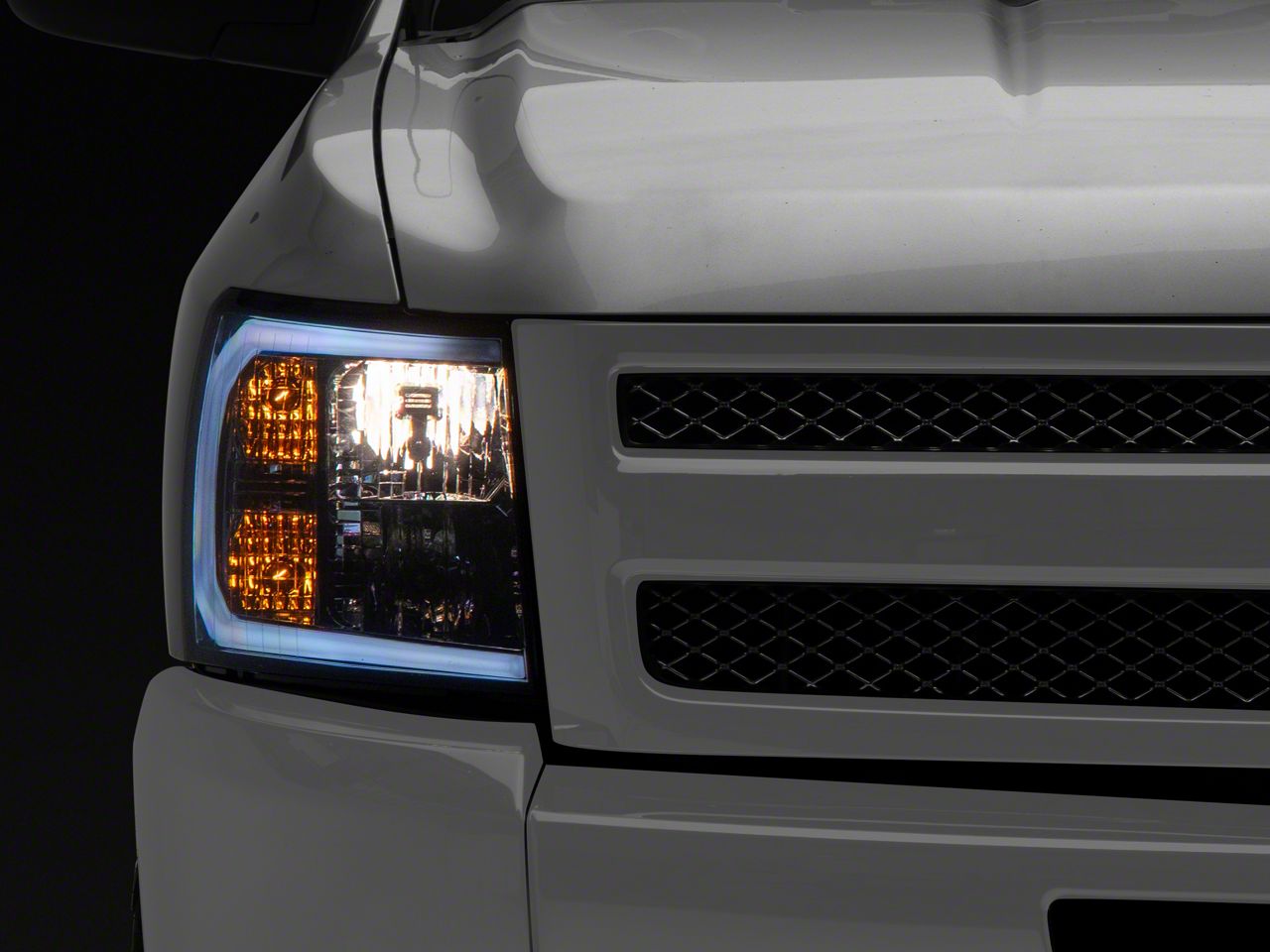 Application. This LED C-Bar Factory Style Headlights in Chrome Housing and Smoked Lens fits all 2007-2013 Chevrolet Silverado 1500 models.