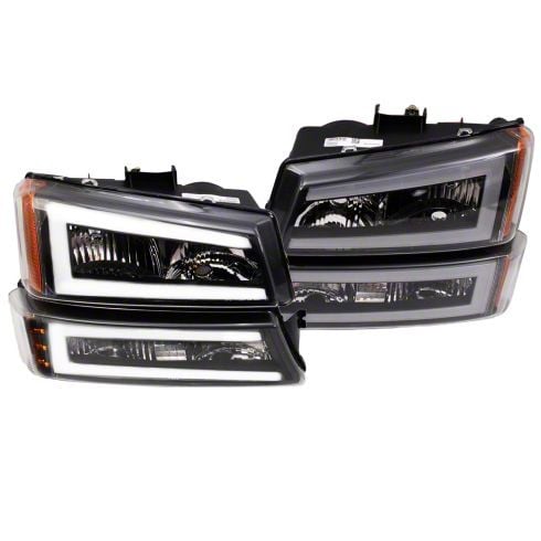 Modern Lighting Upgrade. The LED C-Light Bar Headlights offer a significant upgrade for your 2003-2006 Silverado 1500, combining modern aesthetics with enhanced visibility. Featuring a matte black finish housing and clear transparent lenses, these headlights deliver a sharp, contemporary look that enhances the front-end appearance of your truck. The inclusion of two parking lights and two headlights ensures comprehensive lighting coverage for safer driving in various conditions.