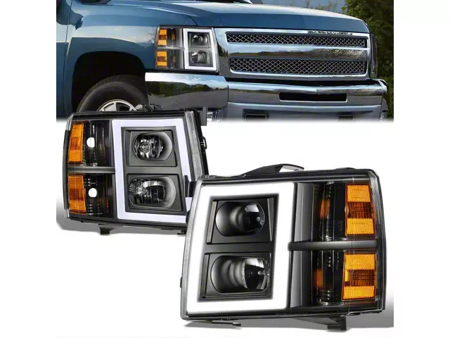 Stylish and Efficient LED Headlights. These LED Headlights offer a sleek upgrade for your 2007-2013 Chevrolet Silverado 1500, featuring a matte black finish housing and clear transparent lens with amber corners. With LED technology and DRL mode, they provide enhanced visibility and a modern look.