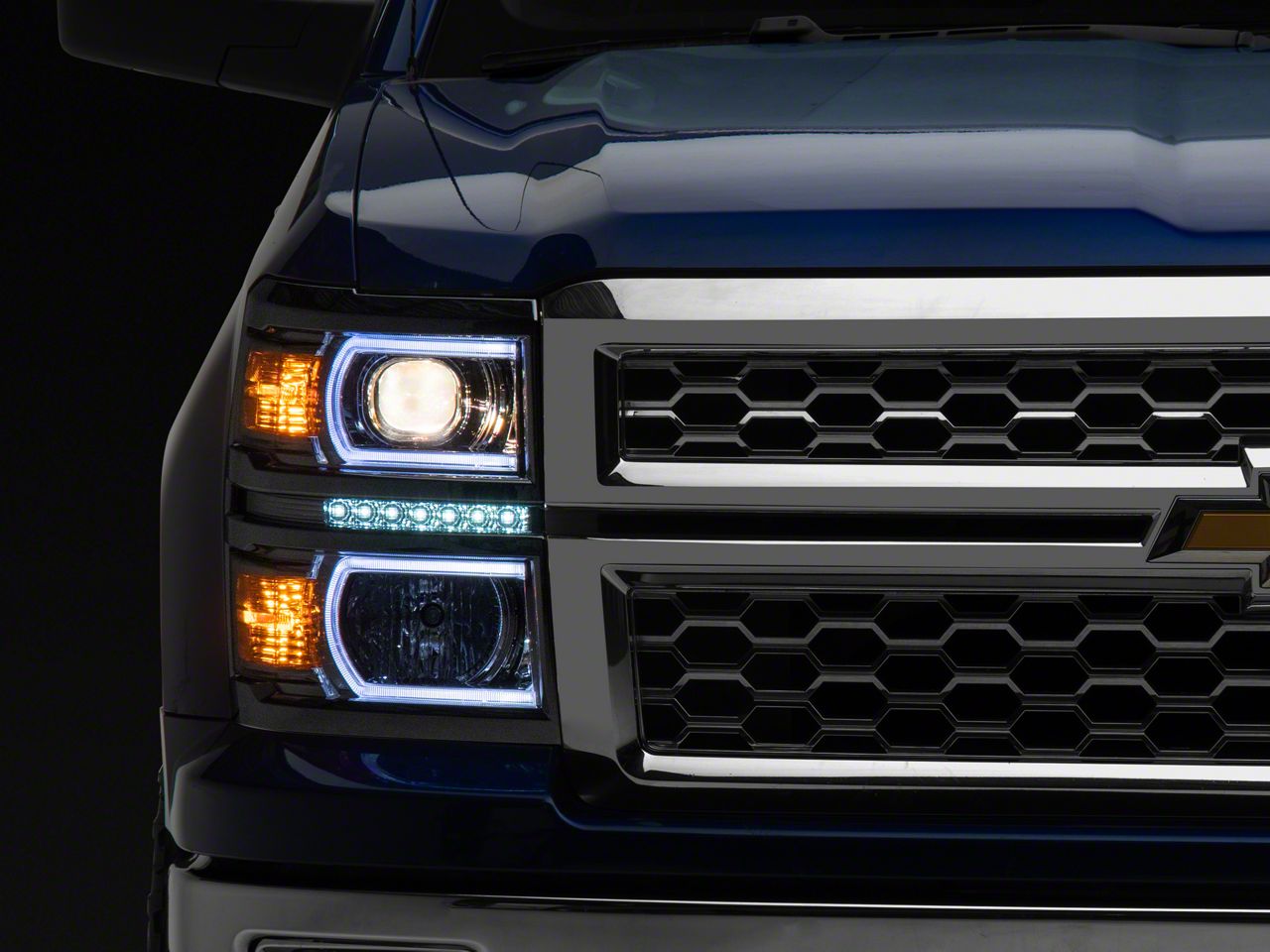 Application. These LED DRL Headlights with Amber Corners fit all 2014-2015 Chevrolet Silverado 1500s.