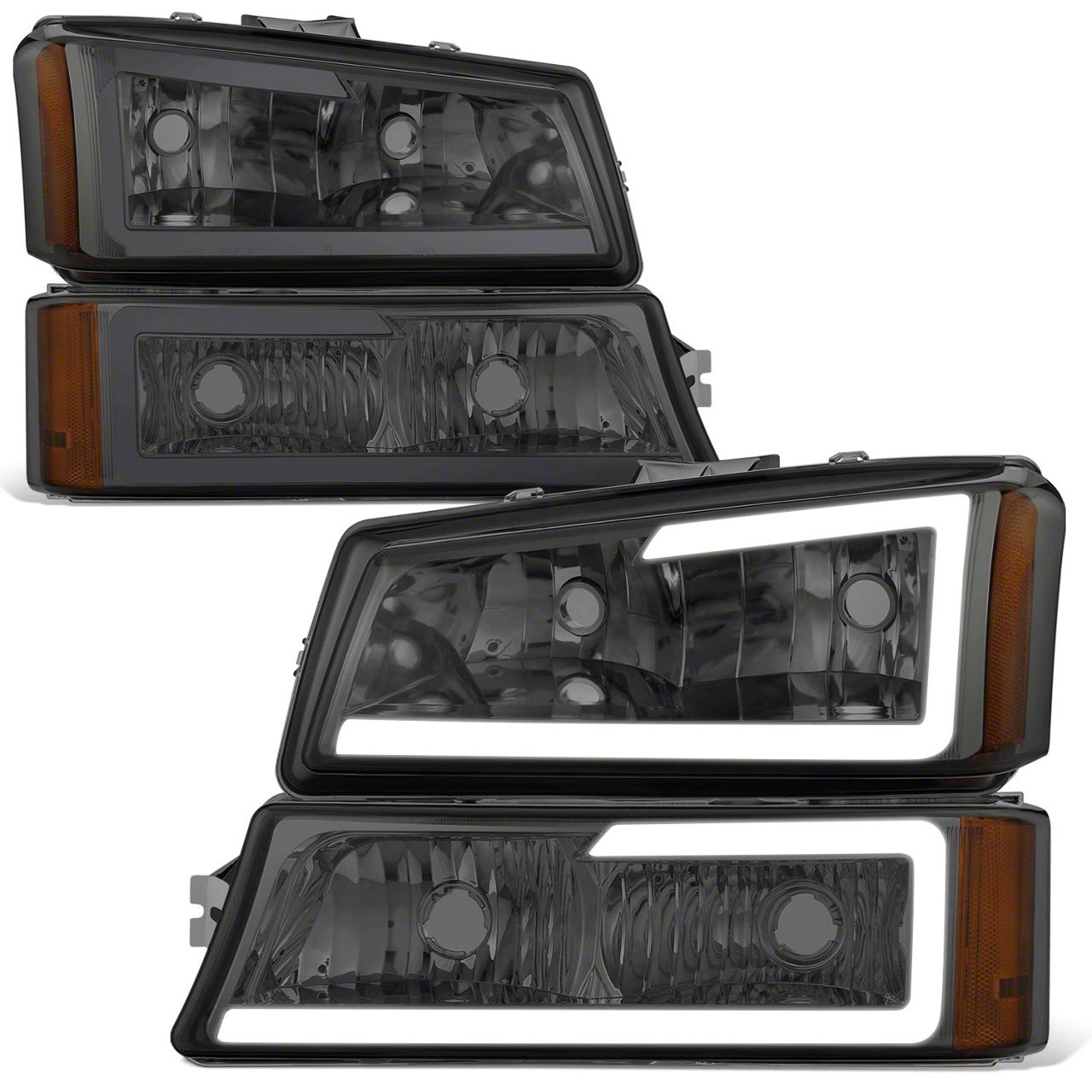 Enhanced Lighting and Style. The LED DRL Headlights with Amber Corners provide a noticeable improvement in both visual appeal and road illumination. Equipped with modern LED lighting, these headlights not only enhance visibility but also give your vehicle a refreshed, custom look with their smoked lens and chrome housing design. Daytime Running Lights offer added safety and a contemporary flair that makes the front end stand out.