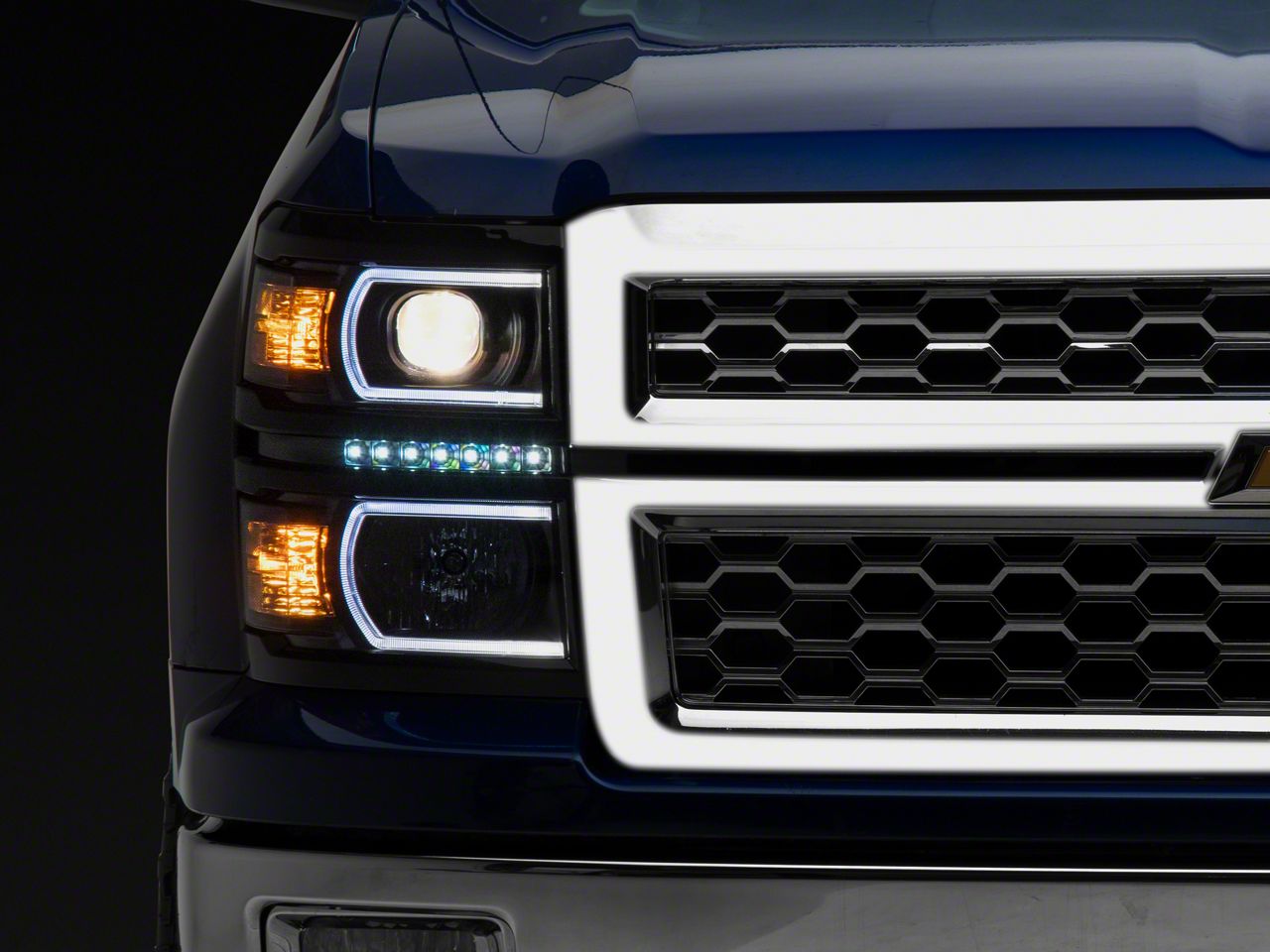 Application. The LED DRL Headlights with Clear Corners; Black Housing; Clear Lens fits 2014-2015 Silverado 1500 models.