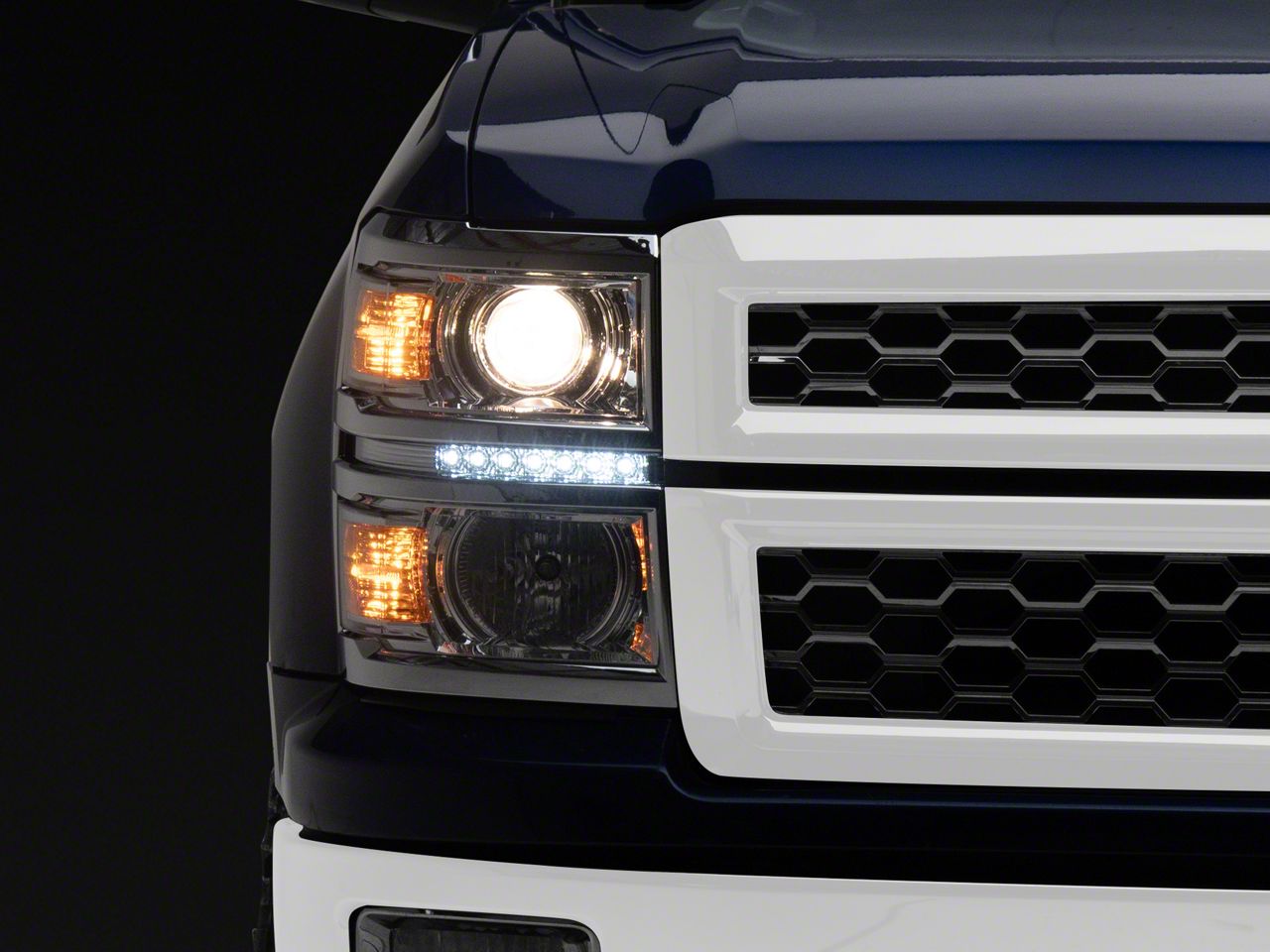 Brighter and More Focused. Introducing the LED DRL Projector Headlights for the 2014-2015 Chevrolet Silverado 1500. These headlights are a direct replacement for your factory headlights and offer a brighter and more focused output. They feature LED bulbs for both the high beam and low beam functions, as well as an LED Daytime Running Light (DRL) function.