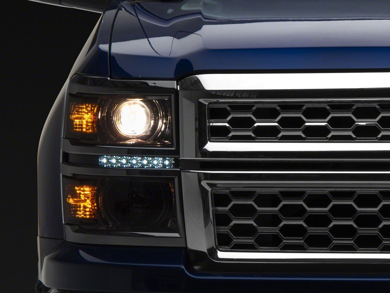 Application. The LED DRL Projector Headlights; Chrome Housing; Smoked Lens fit 2014-2015 Chevrolet Silverado 1500 Models. Reuses stock bulbs - not included.