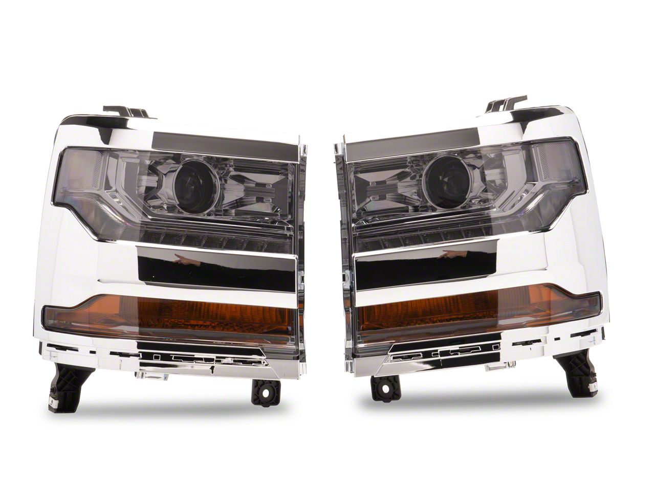 Application. The LED DRL Projector Headlights with Clear Corners; Chrome Housing; Smoked Lens fits 2016-2018 Silverado 1500 with Factory HID Headlights.