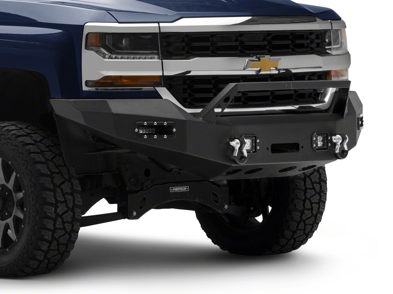 LED Winch Front Bumper. If you're looking to extend your vehicle's front-end protection while simultaneously adding its much needed protection, then take a look at this LED Winch Front Bumper. It improves your tire clearance and is even compatible with up to a 15,000-Pound winch. It even includes Cube led lights and side lights.