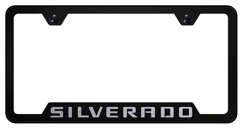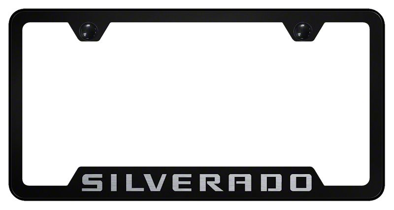 New Look. Maybe it’s time to give your Chevy’s license plate area a new look. You can enhance its appearance by simply installing this Silverado Laser-Etched Cut-Out License Plate Frame. This license plate frame is laser-etched with the “Silverado” logo, giving it a crisp and nice look. What’s more, this kit is equipped with theft-deterrent caps to hide the frame’s hardware while fortifying its protection against theft.