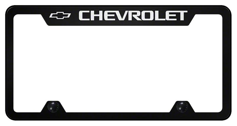 Custom Frames. Give your ride a bespoke look with the Chevrolet Laser Etched License Plate Frame. This frame comes laser-etched with the Chevrolet logo and is available in 3 colors: black, mirrored, and gold.