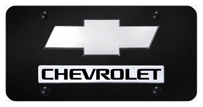 Description. License Plate; Dual Chevy; New; Chrome on Black Plate