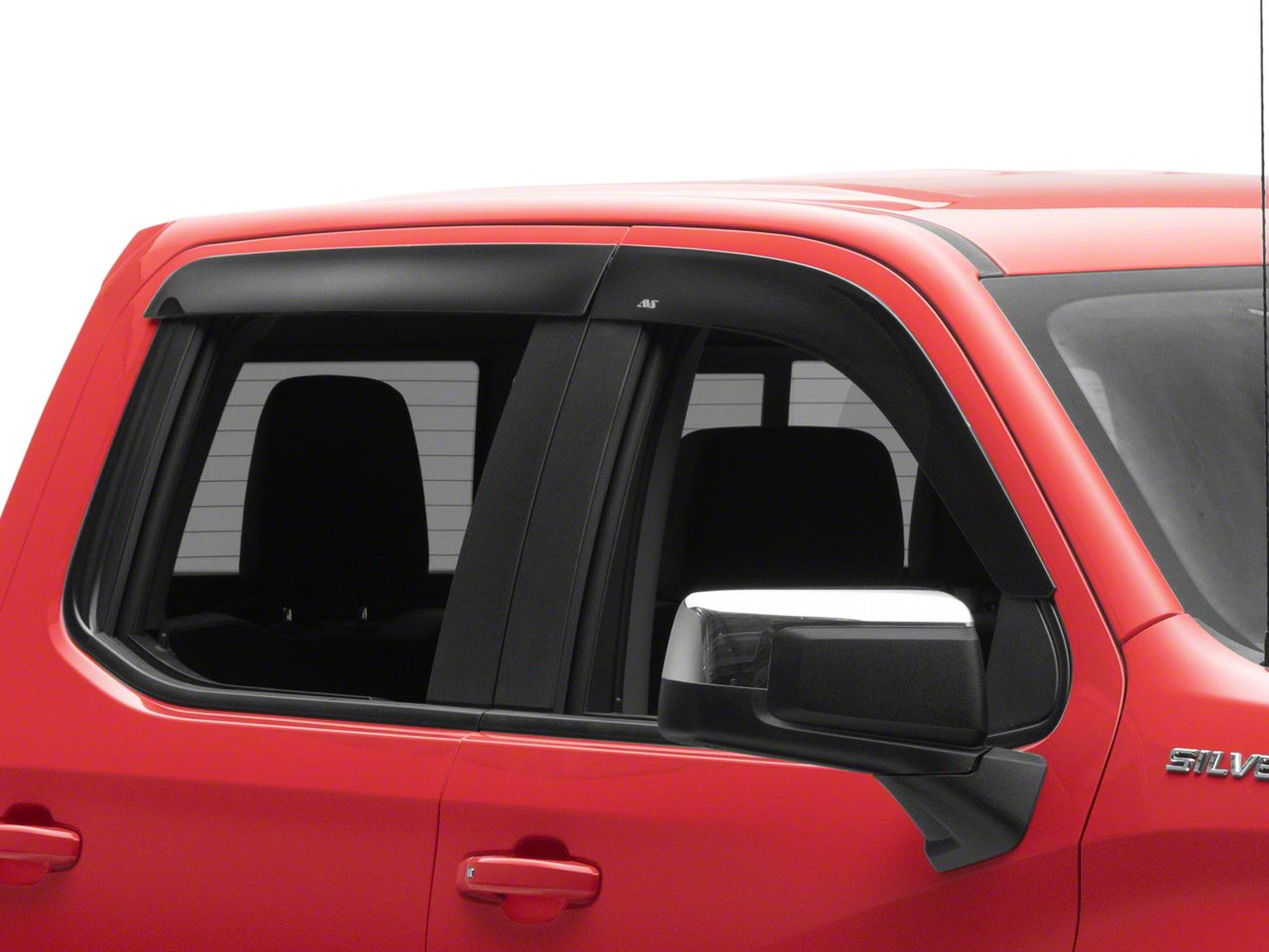 Application. These Front and Rear Low Profile Ventvisor Window Deflectors in Dark Smoke are engineered to fit 2019-2025 Chevrolet Silverado 1500 Crew Cab models.