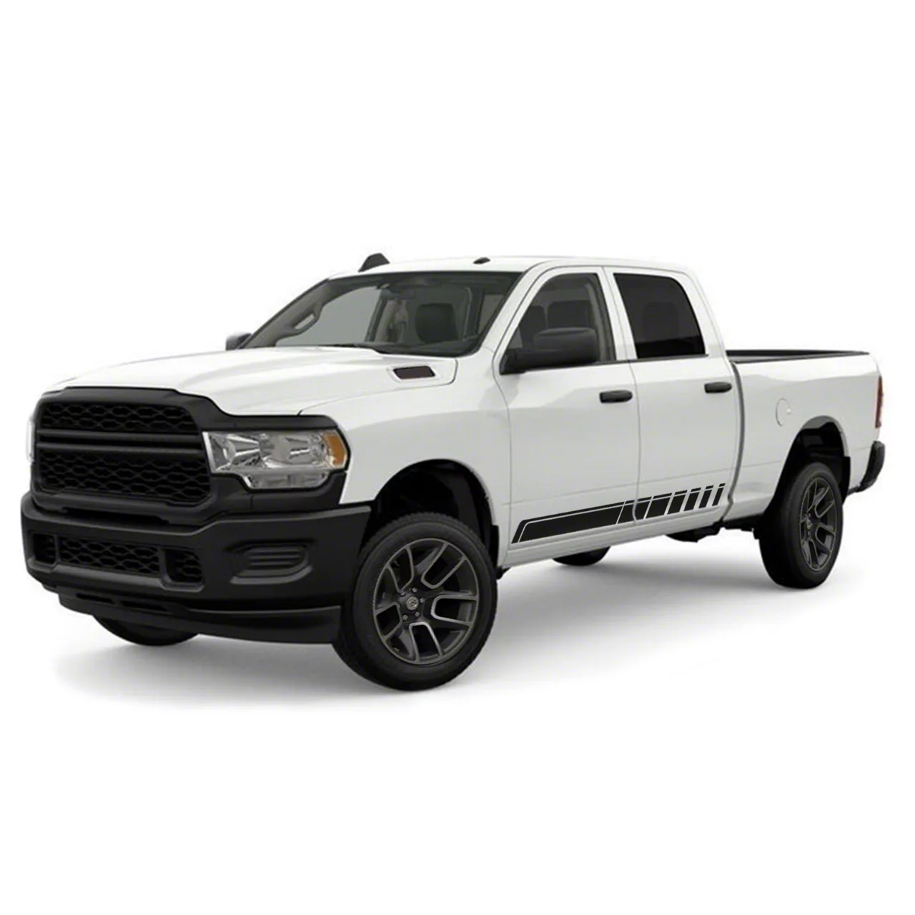 Rocking Rocker Panel Decals. Add a bit of character to your Silverado 1500 with the Lower Rocker Panel Stripes in Matte Black. These vinyl decals come in pairs, one for the driver and passenger side. The stripe design of these decals runs through the length of the cab in fading pattern giving your RAM interesting new add-ons.
