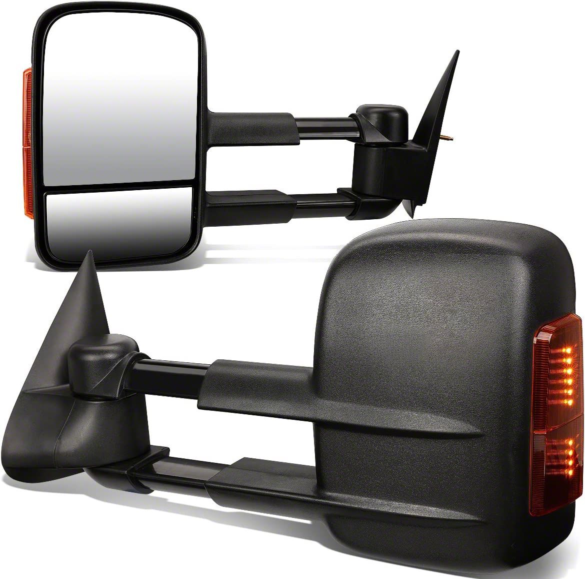Construction and Appearance. Each mirror features a rugged textured black finish that blends seamlessly with factory trim. The integrated amber signals provide added visibility during lane changes and turns, while the durable construction ensures lasting strength in varying driving conditions.