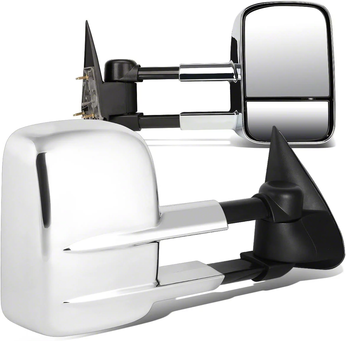 Chrome Finished Cover. Elevate the functionality and style of your Silverado 1500 with these Manual Towing Mirrors, designed for drivers who demand both performance and aesthetic appeal. These mirrors feature a manual telescoping function, allowing you to easily adjust the mirror's length based on your towing needs, ensuring a clear and broad view of the road behind you. The chrome-finished mirror cover adds a touch of elegance and sophistication to your Silverado 1500, enhancing its overall exterior look.