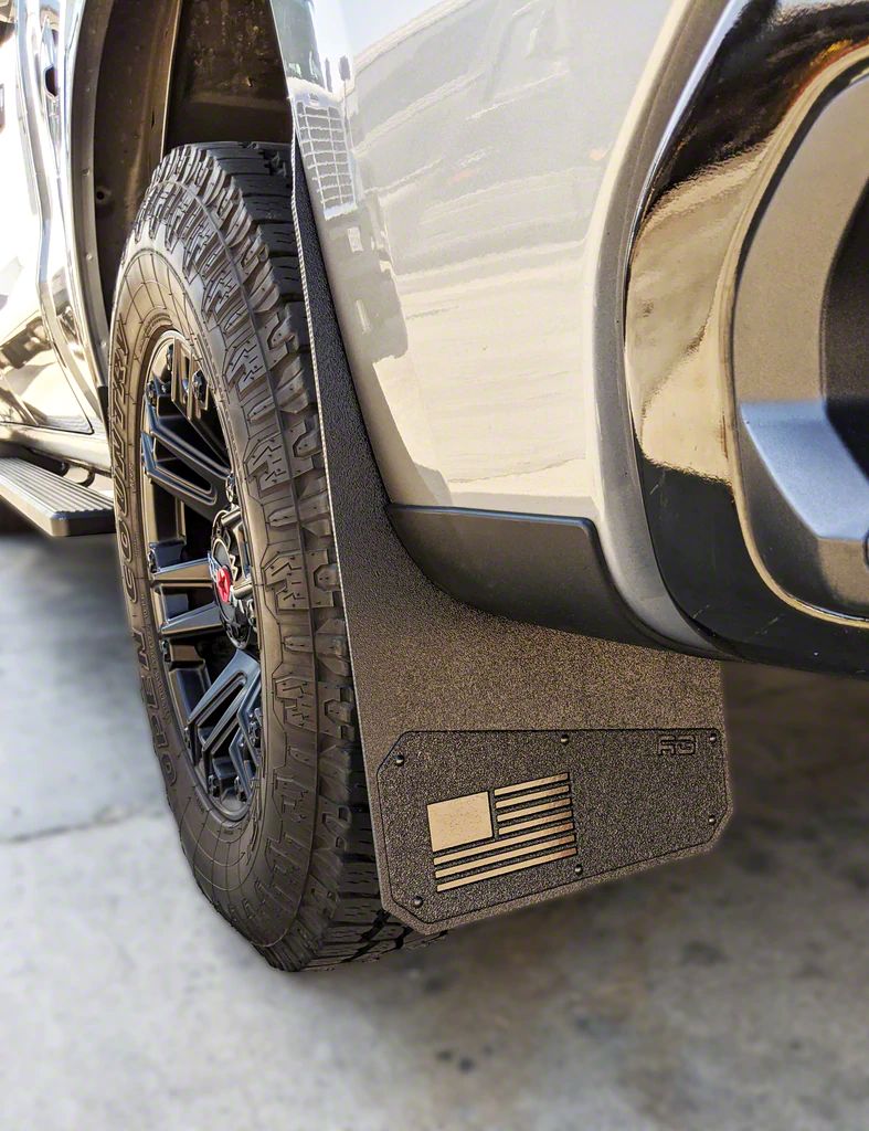 Resilience and Flexibility. Crafted from a heavy-duty proprietary armor-coated material, these mud flaps offer exceptional durability and resistance to wear and tear. They are tough enough to withstand rugged conditions while remaining flexible to accommodate various road surfaces. The stainless steel laser cut plates further enhance the overall sturdiness and aesthetic appeal of the mud flaps.